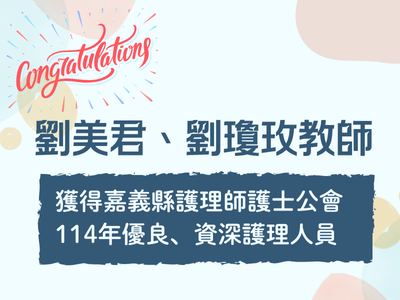 劉美君、劉瓊玫老師榮獲嘉義縣護理師護士公會114年嘉義縣優良、資深護理人員